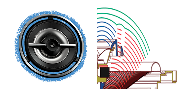 Ovaj jedinstveni oblik visokotonca stvara snažan zvuk napred, kao i šire zvučno polje na 5 kHz i višim frekvencijama.