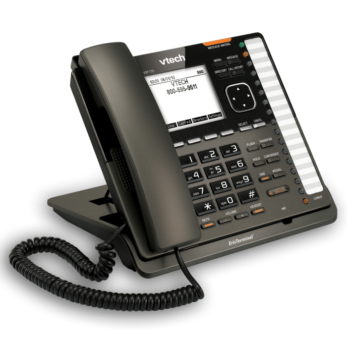 VTech VSP735 SIP Telefon je poslovni telefon dizajniran za rad sa popularnim SIP telefonskom (IP PBX) opremom. Nakon što ste konfigurirali svoju SIP opremom VTech VSP735 omogućava vam upućivanje i prijem poziva kao što biste želeli sa bilo kojim drugim poslovnim telefonom.